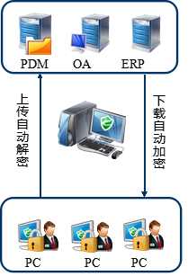 如果要求终端数据上传到企业某些应用服务器(比如:PDM、OA)的数据是明文,那么可以将这些应用服务器配置添加到白名单队列中,终端上传的数据会被自动解密成明文后保存在服务器上。如果上传到其他服务器则还是密文存储;